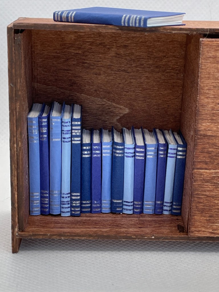 These assorted books are made from cardstock, construction paper, glues, and markers. They look fabulous in your miniature dollhouse library.