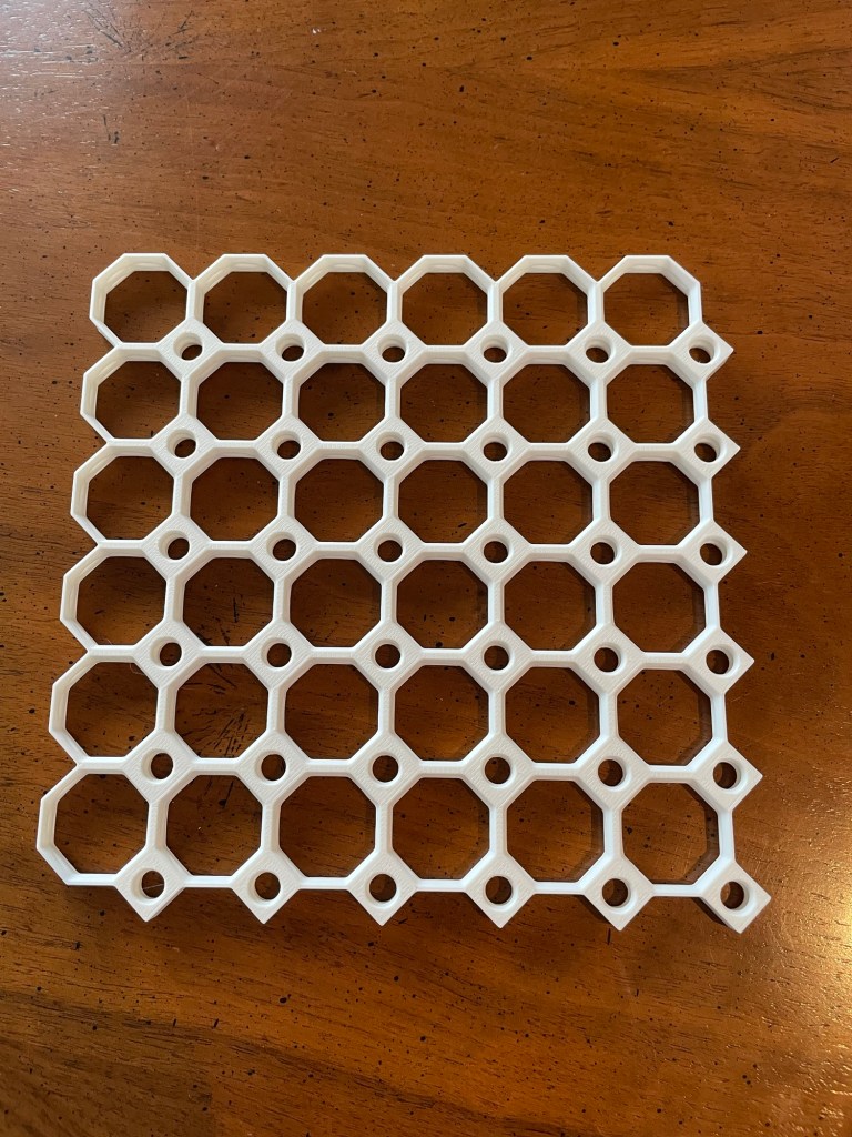 For our second print, we began work on a multiboard for the workshop. This will function like a pegboard for tools and supply storage, but is more modular. (Check out the multiboard website here: link.)