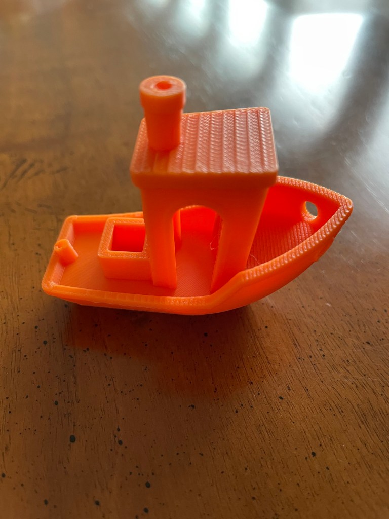 This unboxing video from TheEdgeofTech shows just how easy the printer was to assemble and set up (link). It took us about 20 minutes. For our first print, we chose a benchy in the orange filament provided with the P1S AMS package.