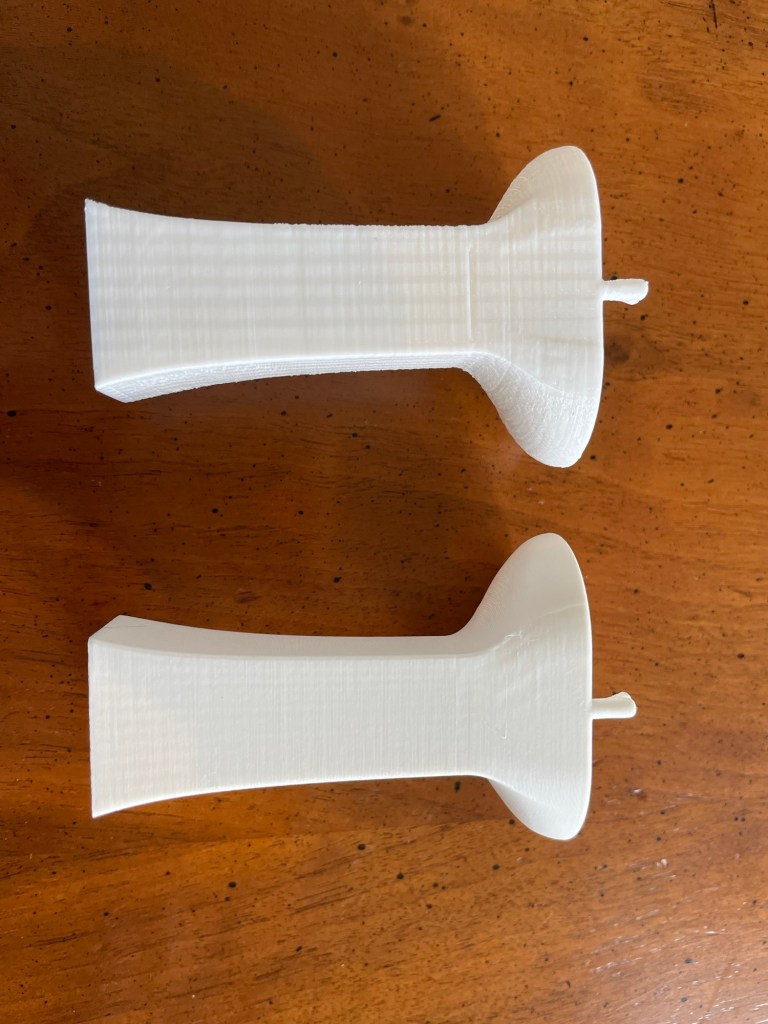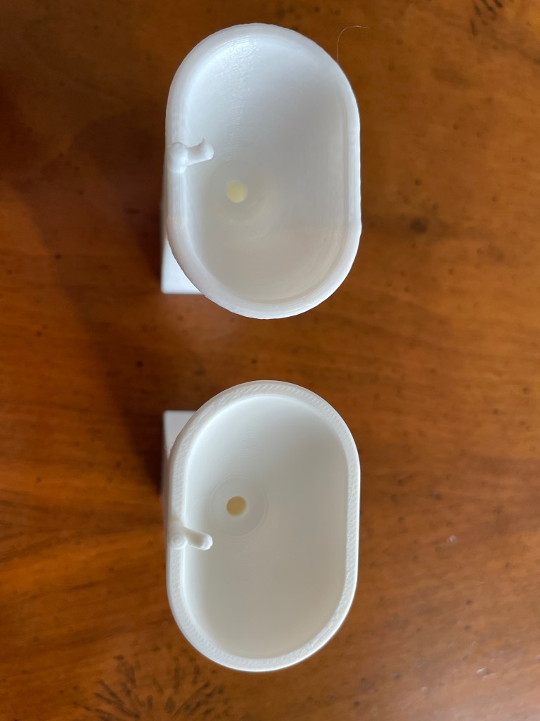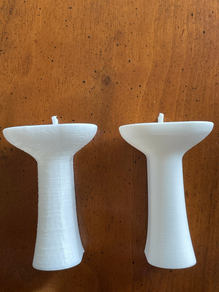 To demonstrate the difference between our kid-friendly printer and the P1S, here is the same 1:12 scale bathroom washstand file printed on both. (The free file is available here: link.) As you can see, the detail is much better from the P1S. We are using Bambu Lab PLA Matte filament, which also helps to reduce visibility of the layer lines. We made this with the 0.4mm hotend, but Bambu Lab has an even smaller 0.2mm hotend, which Lindsay recommends for pieces smaller than one inch.