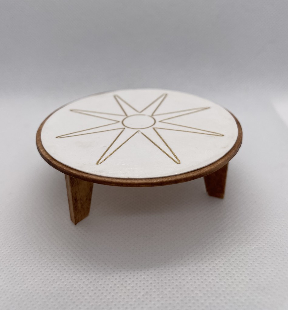 This coffee table, for example, uses basswood cut on the Maker and cardstock that I used to Maker to decorate with gold foil.