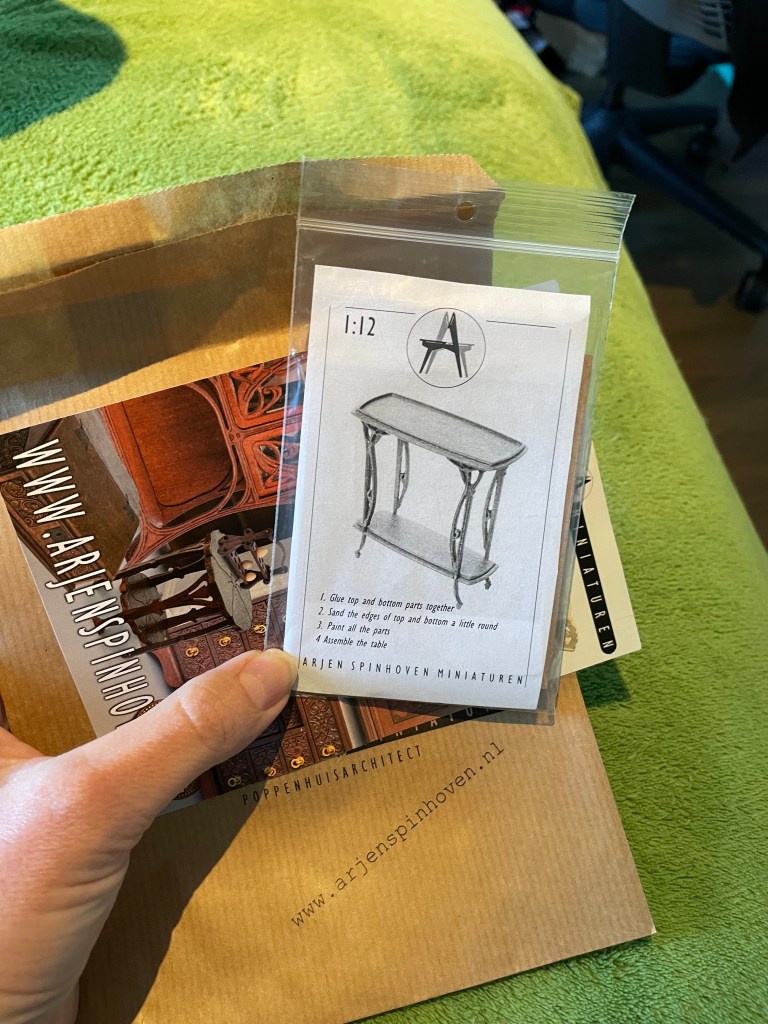 During the Good Sam Miniatures Show in San Jose, I bought this kit for a intricate art deco side table. Arjen Spinhoven, the miniaturist, could not have been nicer in talking me through the assembly process.