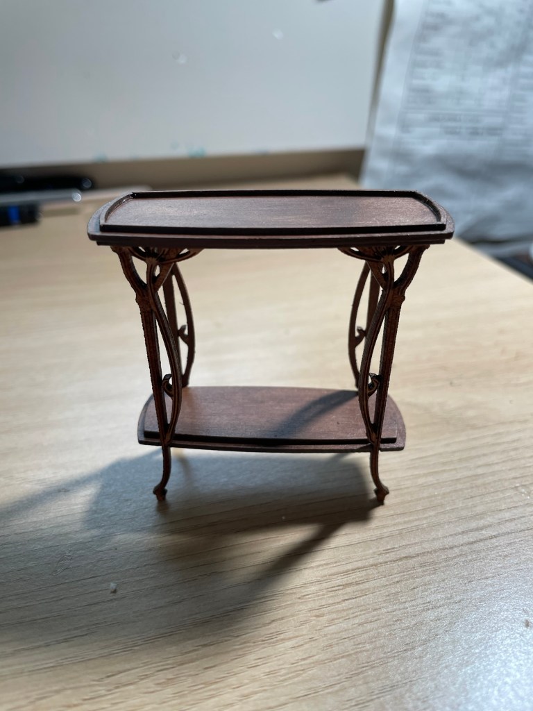 I haven’t made a lot of mini furniture from kits, but this one seemed like a good choice because the fine detailing on the legs would not be achievable for me on a 3D printer or laser cutter.