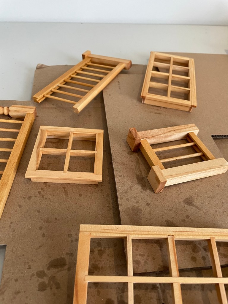 I’m having so much fun with this A frame ski cabin that I bought in the going-out-of-business-sale for miniatures.com. Here are a few preview photos of the project in progress.